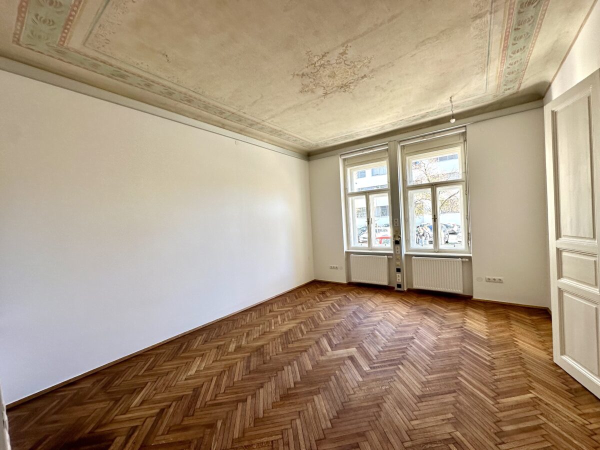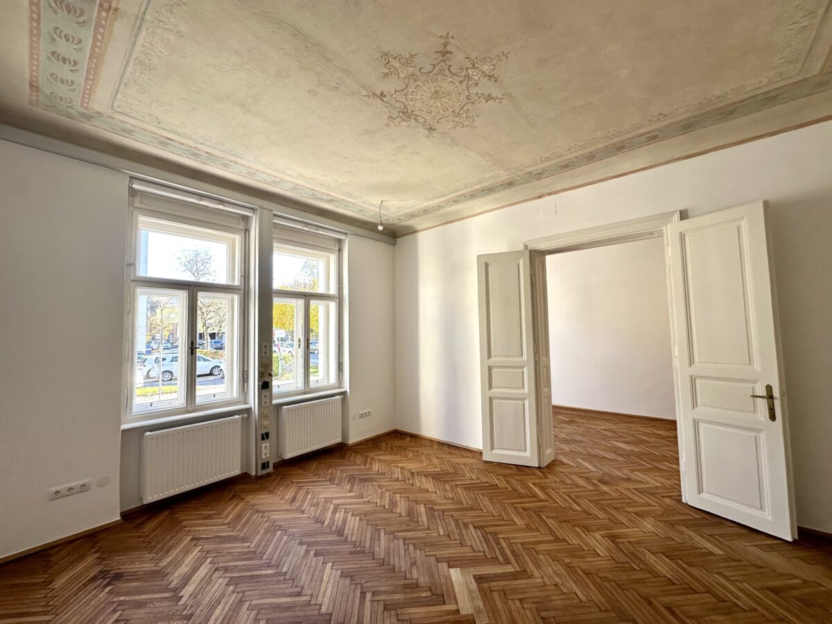 Diese hochwertige Bürofläche befindet sich im Hochparterre eines sehr zentral gelegenen Altbauhauses im Jugendstil im beliebten Grazer Bezirk Leonhard unweit des LKH Graz der Karl-Franzens-Universität. Das rund 78 m² große neu sanierte Büro besticht besonders durch seine ausgezeichnete Lage, wie auch der perfekten Aufteilung, welche sich in 3 Zimmer, einer Küche, einem Sanitärbereich mit Dusche, einer separaten Toilette und einem Abstellraum gliedert. Die Sanierung des Objekts wurde gerade fertiggestellt und verfügt über eine moderne vollausgestattet Küche, einer barrierefreien Dusche, sowie über abgeschliffene und eingeölte Parkettböden. Der Altbauflair wird durch die beachtliche Raumhöhe, die Flügeltüren und dem klassischen Fischgrät-Parkettboden hervorgehoben. Ein Zimmer verfügt ebenfalls über eine wunderschöne restaurierte ursprüngliche Deckenmalerei aus dem Jahre 1903. Weiters bietet das Jugendstilhaus mit neu sanierter Fassade im Innenhof überdachte Fahrradabstellplätze. Ausreichend KFZ-Abstellplätze der blauen Zone befindet sich rund um das Gebäude.
