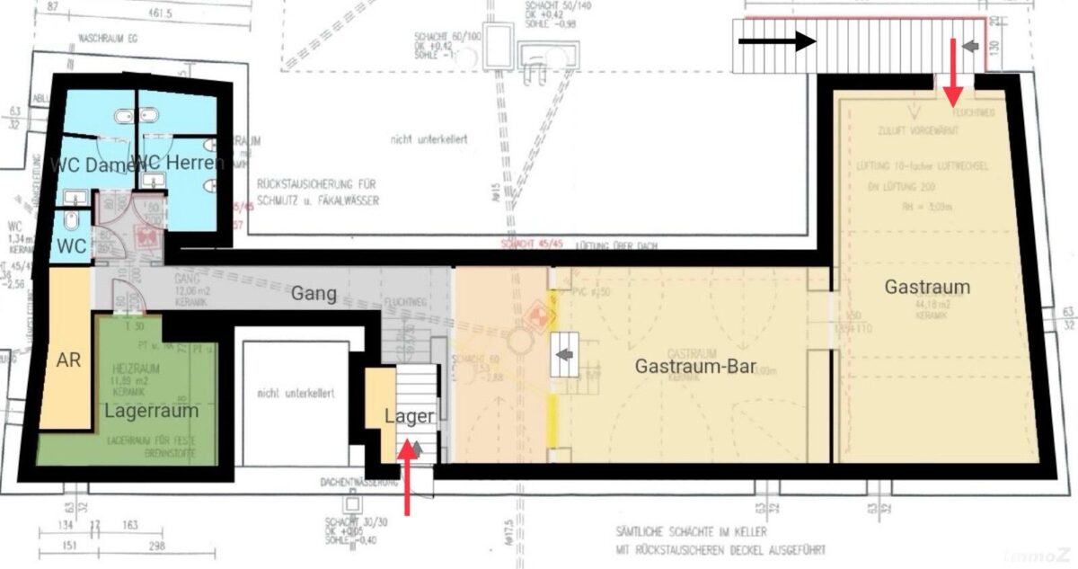 Der Lokal – mit Gewölbe befindet sich in guter Frequenzlage, Nahe der Universität, TU, Kunstuni, Es besteht aus 2 Gasträumen, Gang, Damen, Herren und Personal WC, sowie einem Lagerraum, einer Abstellnische, einem Eingang, sowie einen Notausgang. Die Räume sind mit einer Lüftung ausgestattet. Das Gewölbe und Mauerwerk wurden sandgestrahlt. Fliesenboden, Kein Biervertrag.